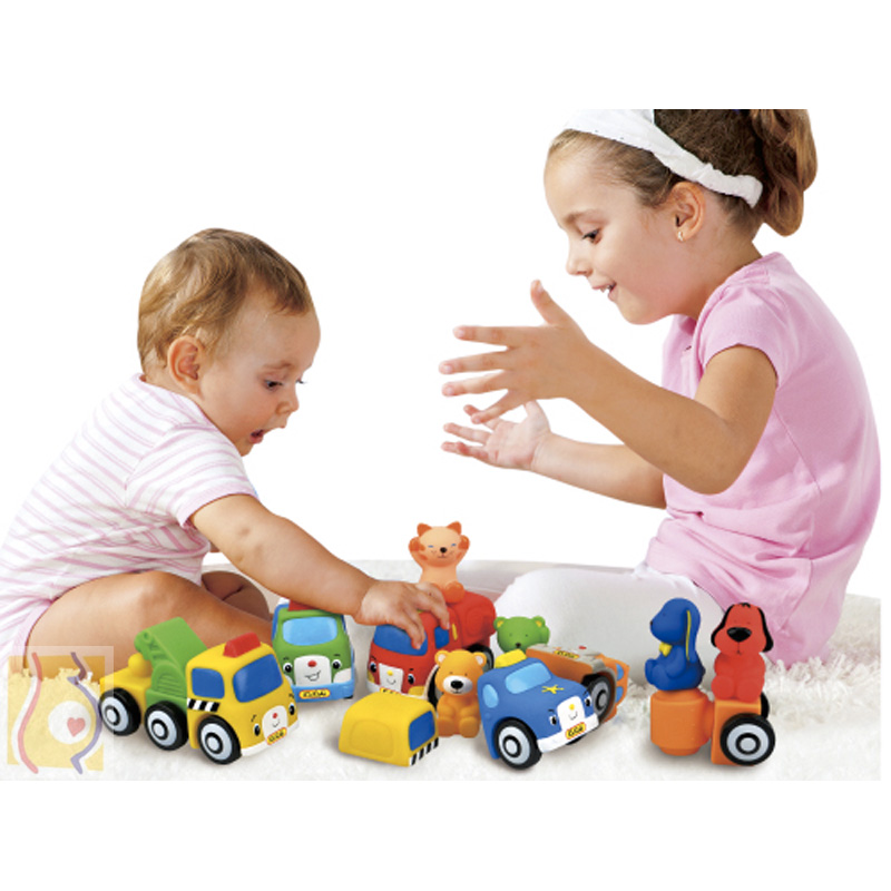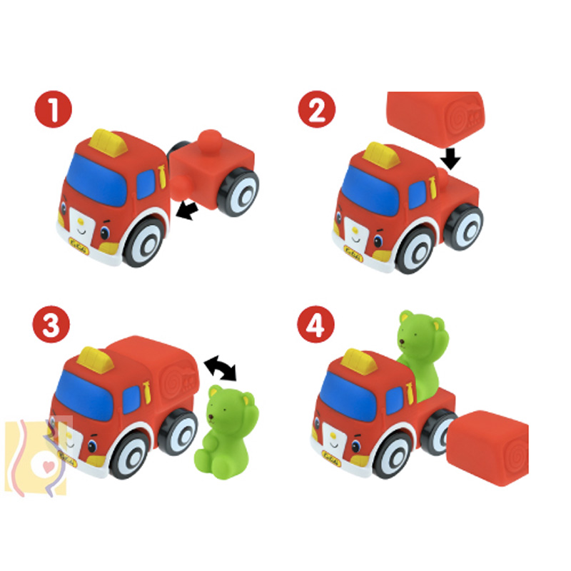 W początkowym okresie dziecko poznaje strukturę, kształty i kolory, natępnie uczy się chwytania poszczególnych elementów i składania ich w całość. Poznaje nazwy pojazdów, kolory, zdobywa dodatkowe umiejętności takie jak: puszczanie auta po podłodze, a także wskazywanie i nazywanie szczegółów twarzy na figurce misia Sama (oczy, uszy, nos i usta). Może zamieniać miejscami klocek z tyłu auta, umieszczając na jego miejscu misia. Klockami można bawić się również w wodzie, uprzyjemniając czas kąpieli.